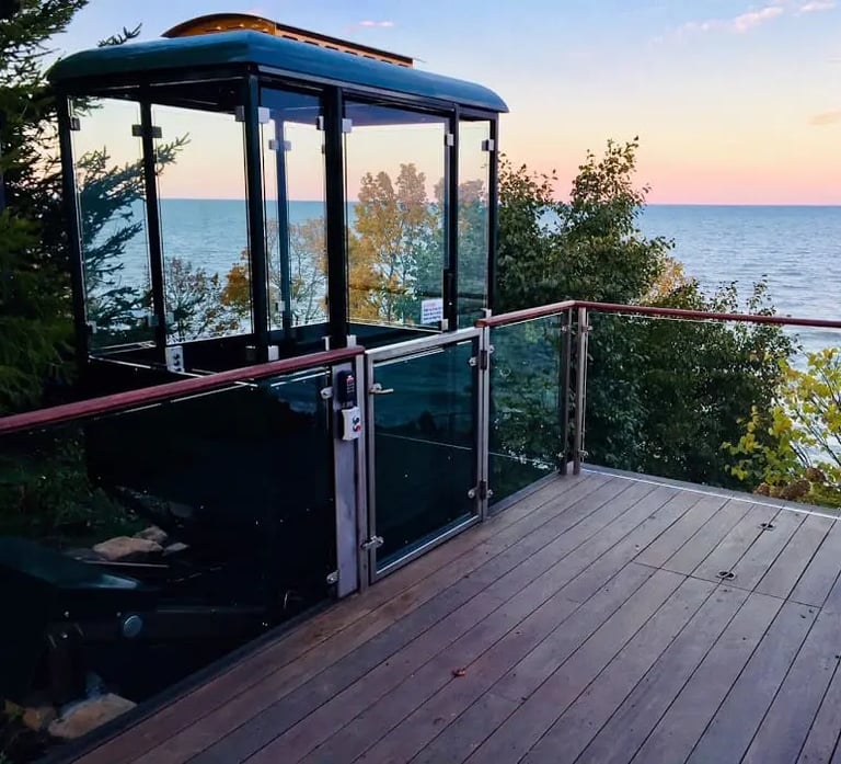 A hillside or lake shore property has many benefits – why not add the benefit of easier access? A Hillside Trams new system can provide a safe and enjoyable way to get up and down steep, rough or unsafe terrain. The cost is comparable to having steps installed which still leaves the fact that you have to climb. A Hillside Tram not only relieves climbing stairs, it gives safe access to those with mobility restrictions, elderly and families with young children. Greater accessibility of your property is definitely an added asset!